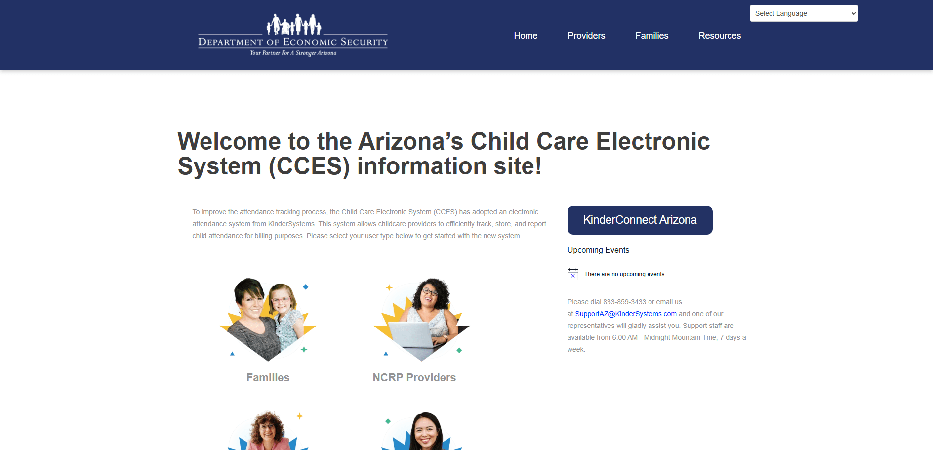 The Child Care Electronic System (CCES) is technology modernization for child care, funded by Arizona’s Child Care and Development Fund lead agency, the Department of Economic Security (DES) Child and Community Services Division, with the goal being that all child care providers will use state of the art systems, and improve business practices.