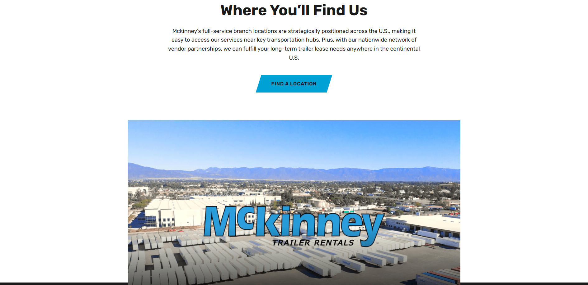 Mckinney’s full-service branch locations are strategically positioned across the U.S., making it easy to access our services near key transportation hubs. Plus, with our nationwide network of vendor partnerships, we can fulfill your long-term trailer lease needs anywhere in the continental U.S.
